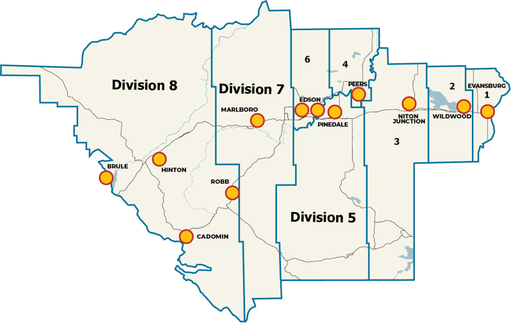 - In person at the Edson Administration office at 2716 1st Avenue, Edson, AB or the Wildwood Administration office at 53404 Range Road 92 A, Wildwood, AB, during regular business hours;