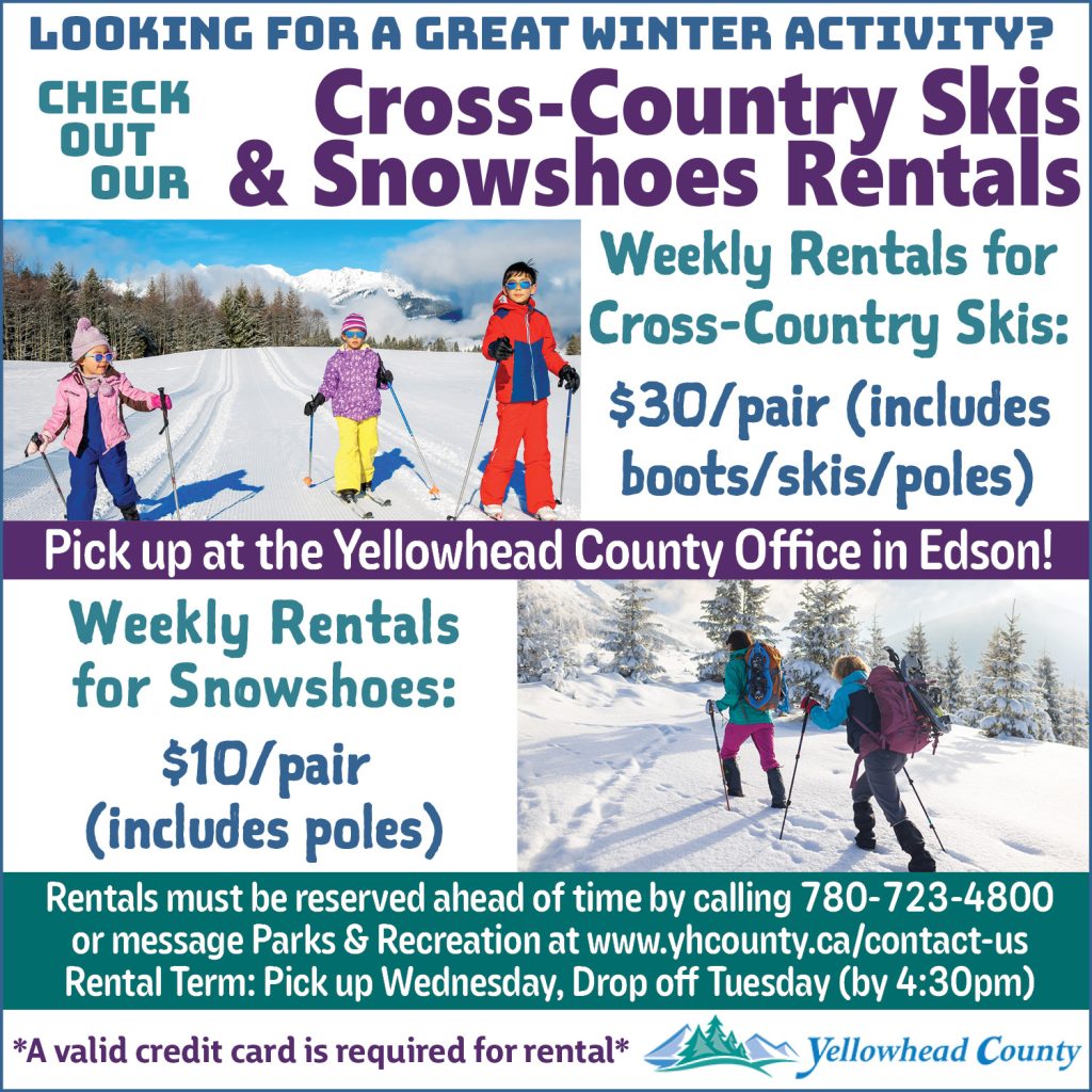 Yellowhead County Parks & Recreation offers Cross-Country Skis and Snowshoes Rentals all winter long!