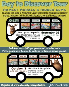 Join us and visit some of Yellowhead County’s best spots, including Rise Together murals, recreation facilities, historical locations, points of interest, and more!