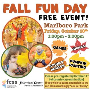 Please pre-register by October 3rd at www.yhcounty.ca/registration if you wish to paint a pumpkin so we can plan accordingly *one pumpkin per family*