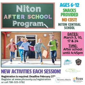 Registration is required for this program. Register at https://app.univerusrec.com/yhcountypub/index.asp or call 780-325-3782.