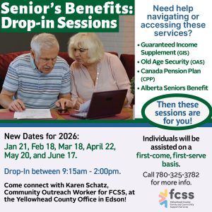 Come connect with Karen Schatz, Community Outreach Worker for FCSS, at the Yellowhead County Office in Edson!